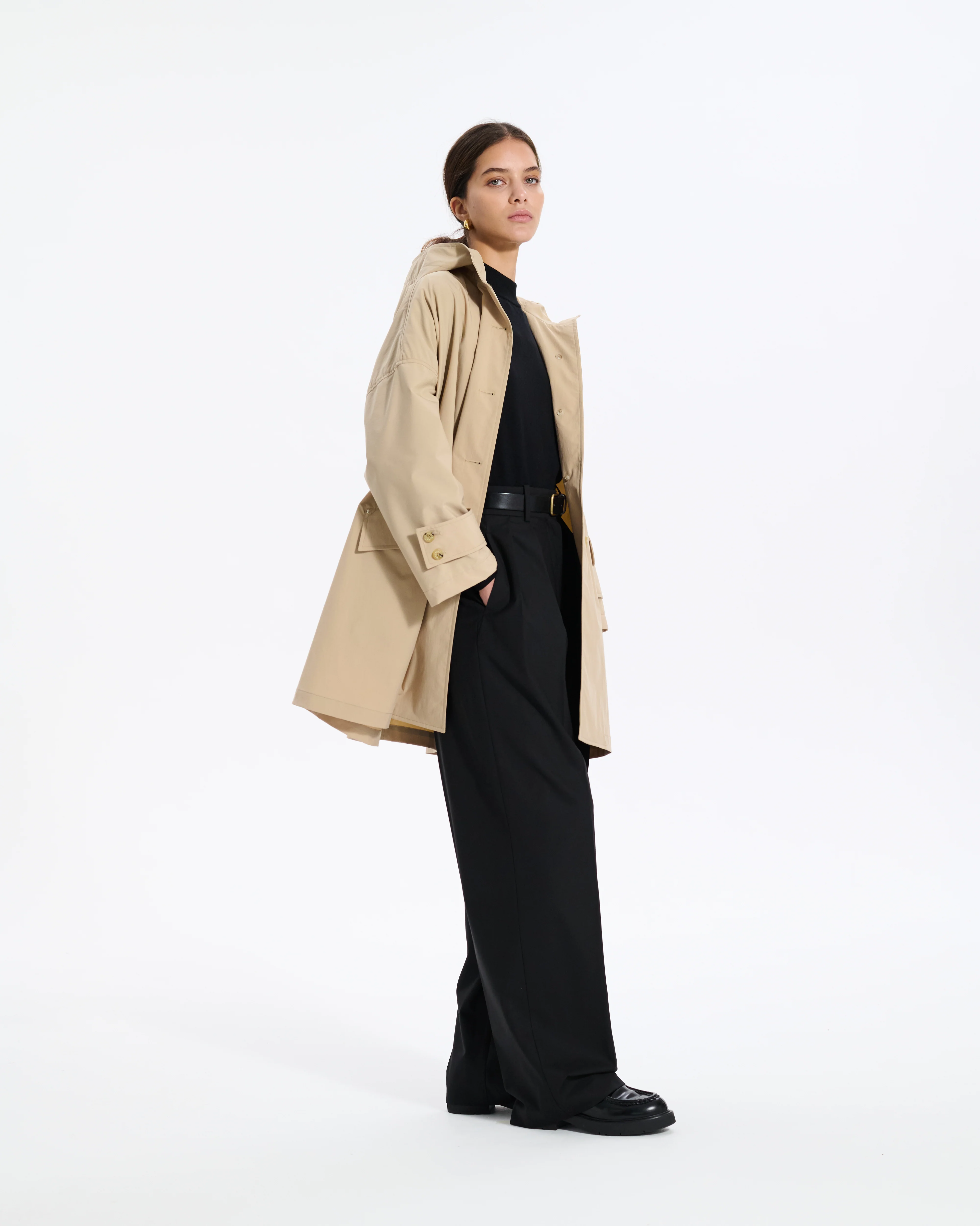 This version of the Humbie coat offers all of the chic design of the classic Humbie model, but with drop shoulder styling and a clean, hooded design for an elegant twist that also performs perfectly on rainy days. With its highly water-repellent fabric, made from 60% recycled materials, the short-style coat is lightweight yet with a structured firmness that flatters.