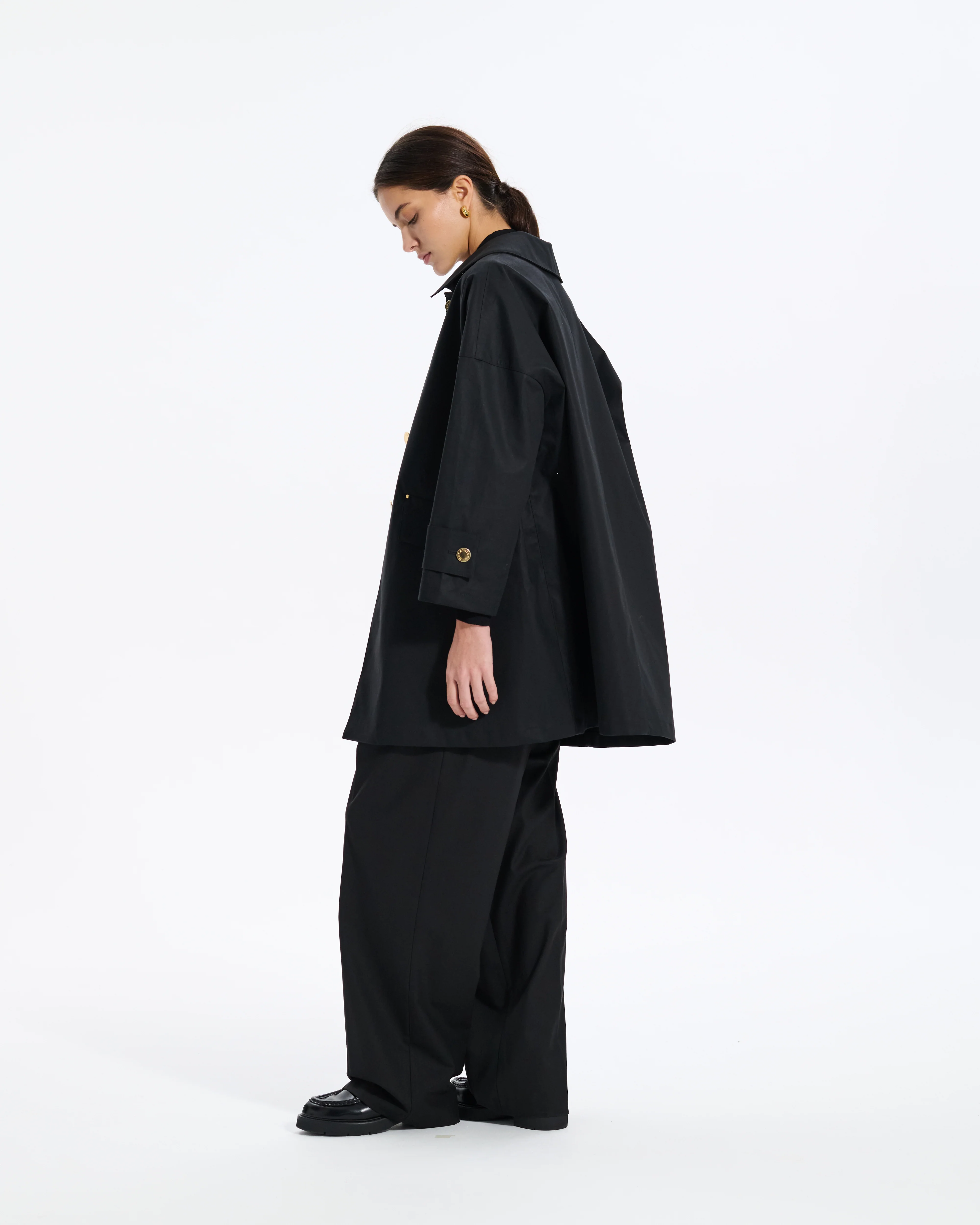 This version of the Humbie is a feminine and flatteringly flared A-line style coat that suits all styles and occasions. The drop shoulder short coat stands out in the style stakes with its beautiful gold buttons and leopard-print lining whilst also offering a breathable and waterproof material for those inevitable rainy days. Featuring the raintec classic fabric that is a signature of our brand, the coat has added moisture permeability and water repellency, whilst also being suitable for dry-cleaning.